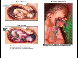 When gasping, a baby may inhale amniotic fluid and any meconium in it.